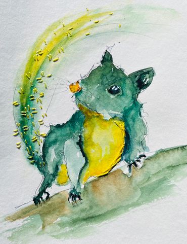 Les Sourires brodés sont des aquarelles originales d'animaux auxquelles j'ai ajouté une touche de broderie à la main.